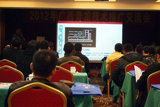 2012年11月8日,龍行天下之青龍建材防水技術(shù)交流會柳州站在柳州市金瑞酒店隆重召開。會議由青龍建材防水保溫技術(shù)總工程師徐新生、廣西青龍化學(xué)建材有限公司原廠長黎世鷹任主講,共有50余人參加。