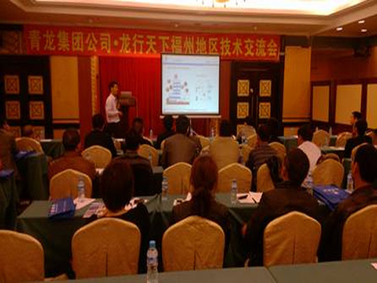 在兩個半小時的推廣會中,青龍建材集團營銷總監(jiān)王定中以福州的建材市場的現(xiàn)狀為例,為大家解析了建材行業(yè)未來的發(fā)展前景,并就青龍建材公司“一個品牌,四門生意”的招商加盟政策做了詳細的介紹。福建大區(qū)域經理周炳陽工程師則深入地剖析了青龍牌