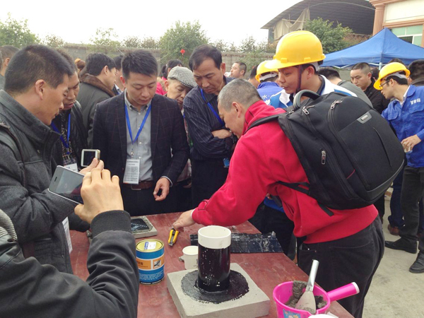 外籍防水專家吉姆先生詳細介紹了水下密封膏技術(shù),并對青龍防水建材作了高度的評價。青龍董事長宋敦清現(xiàn)場翻譯。