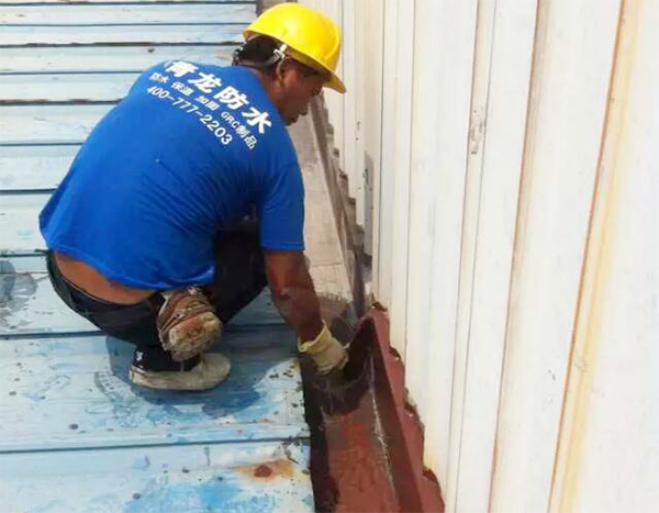 青龍公司中山經(jīng)銷商張總成功承接了這一防水補(bǔ)漏工程。經(jīng)過實(shí)地仔細(xì)檢查,并經(jīng)與客戶詳細(xì)協(xié)商,之后敲定采用青龍公司CQ103丙烯酸酯好的彈性防水涂料和CQ104單組份濕固化純聚氨酯防水涂料的組合補(bǔ)漏方案。青龍CQ103丙烯酸酯防水涂料具有良好的耐老化、延伸性、粘結(jié)性、成膜性及耐高溫性,因此非常適合在鐵皮房屋頂作整體涂刷;而屋頂排水溝則采用CQ104單組份濕固化純聚氨酯防水涂料。