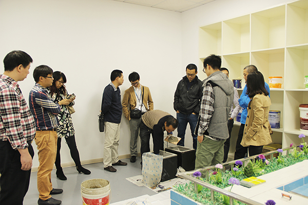 碧桂園考察團(tuán)現(xiàn)場觀察防水材料施工