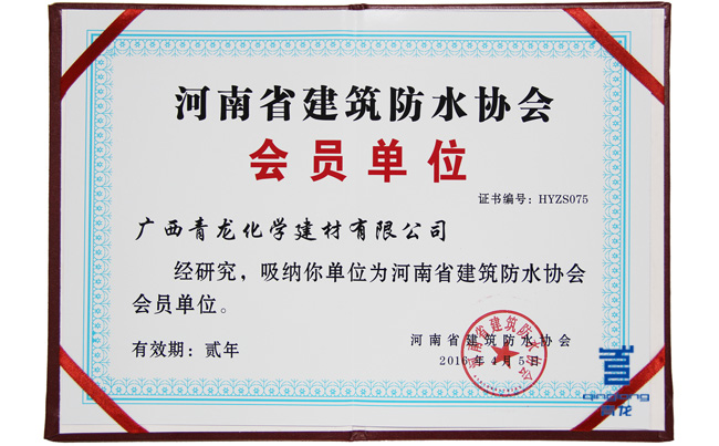 青龍公司獲得河南防水協(xié)會(huì)會(huì)員證書(shū)