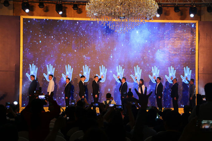 ▲宋敦清董事長等十位嘉賓在液晶大屏上按下手印,正式啟動狂歡節(jié)。