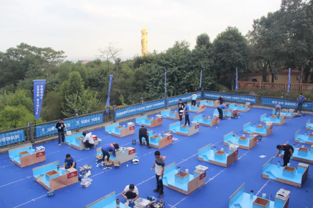 實(shí)操比賽分為衛(wèi)生間防水、美縫、免砸磚補(bǔ)漏,金屬坡屋面和伸縮縫防水,平屋面防水三個(gè)項(xiàng)目。每個(gè)項(xiàng)目的參賽選手個(gè)個(gè)精神煥發(fā),技術(shù)熟練,在風(fēng)景優(yōu)美的蓮花山比拼,也自成一道亮麗的風(fēng)景線,相得益彰,更吸引了大量游客圍觀,駐足觀摩。