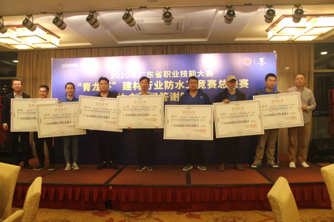 在當(dāng)晚的頒獎(jiǎng)晚宴上,組委會揭曉了各項(xiàng)目的獲獎(jiǎng)名單,并對獲獎(jiǎng)選手進(jìn)行了表彰,對弘揚(yáng)和傳承工匠精神,造就"知識型、技能型、創(chuàng)新型"高技能防水人才,樹立防水行業(yè)模范標(biāo)桿,促進(jìn)廣東省防水行業(yè)全面提升產(chǎn)品質(zhì)量和服務(wù)水平,引領(lǐng)行業(yè)高質(zhì)量發(fā)展產(chǎn)生了積極深遠(yuǎn)的影響。