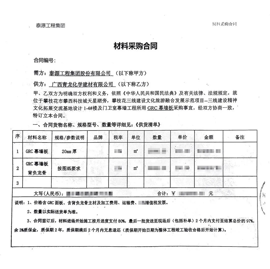 青龍公司此次中標標的為:攀枝花市三線建設(shè)精神文化拓展交流基地設(shè)計 1-4#樓及門衛(wèi)室幕墻工程所用GRC幕墻板。