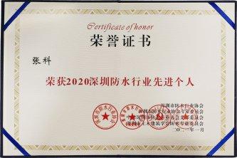 青龍防水張科榮獲深圳市防水行業(yè)協(xié)會“先進(jìn)個(gè)人”稱號