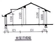 單(多)層建筑物的坡屋頂內(nèi)空間,當設計加以利用時,其凈高超過2.1m的部位應計算全面積;凈高在1.2m至2.1m的部位應計算1/2面積;凈高不足1.2m的部位不應計算面積。設計不利用時不應計算面積。這里我將這種算法簡稱為“凈高界限計算法”。凈高是指樓面或地面至上部樓板(屋面板)底或吊頂?shù)酌嬷g的垂直距離。如圖2:第(1)部分凈高<1.2m,不計算面積;第(2)、(4)部分1.2m≤凈高≤2.1m,計算1/2面積;第(3)部分凈高>2.1m,應全部計算面積。