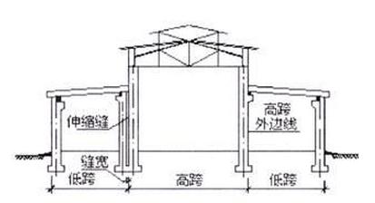 高低聯(lián)跨的建筑物應以高跨結構外邊線為界分別計算建筑面積;其高低跨內(nèi)部連通時,其變形縫應計算在低跨部分的面積內(nèi)。(圖4)