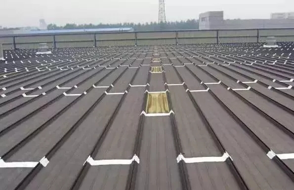 2、卷材鋪貼方向一律平行屋脊鋪貼,平行屋脊的搭接縫按順流水方向搭接,采用滾鋪粘貼法施工。
