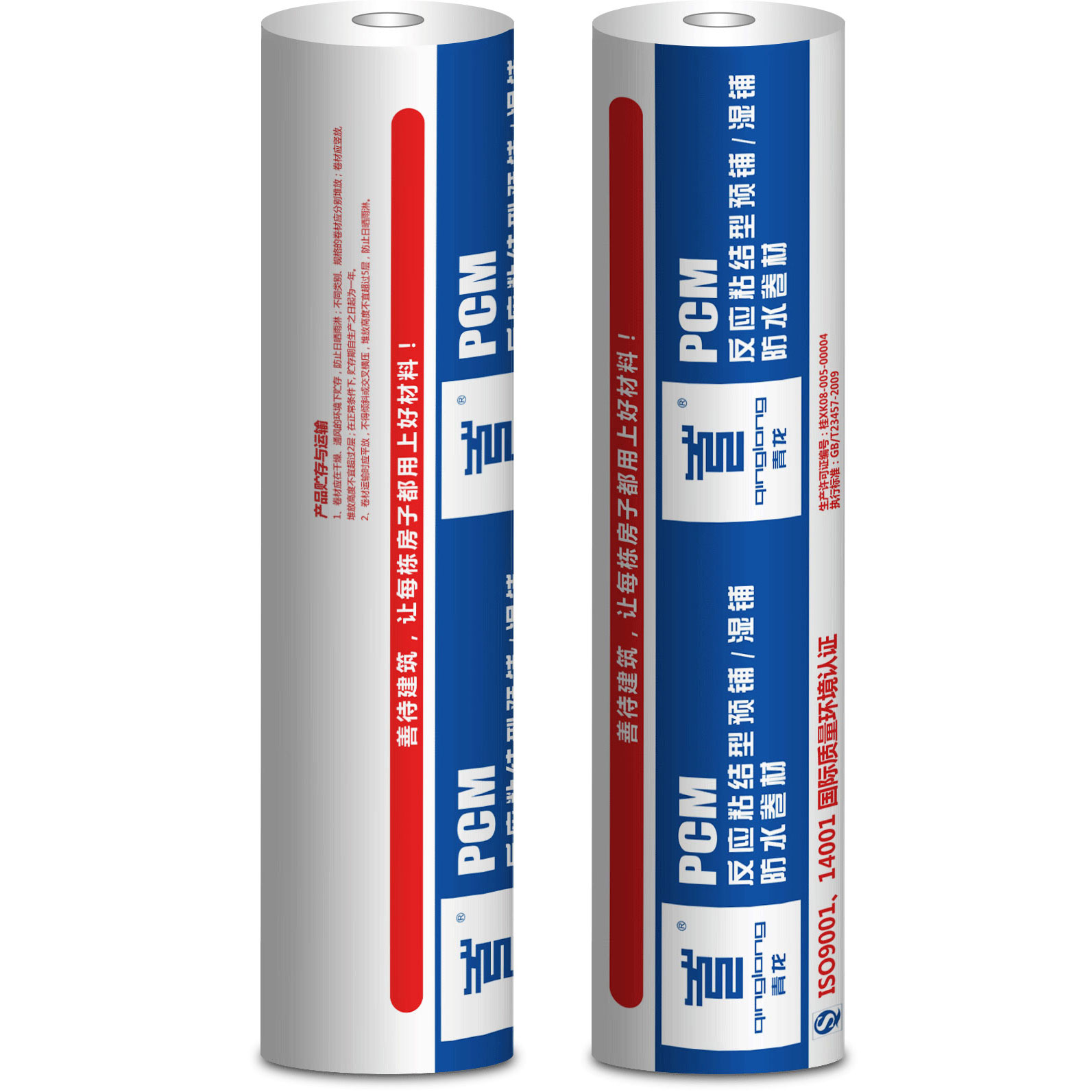 PCM反應(yīng)粘結(jié)型高分子預(yù)鋪防水卷材采用了共聚物樹脂類高分子(HDPE、LDPE、EVA、PVC、ECB、TPO)等均質(zhì)片材為主體防水層,在其上表面或上下表面涂一層具有蠕變功能得橡膠瀝青自粘材料再覆以硅油防粘隔離膜制成的高分子自粘防水卷材,可以根據(jù)需要在高分子片材上復(fù)合織物加強(qiáng)組成高分子防水卷材。
